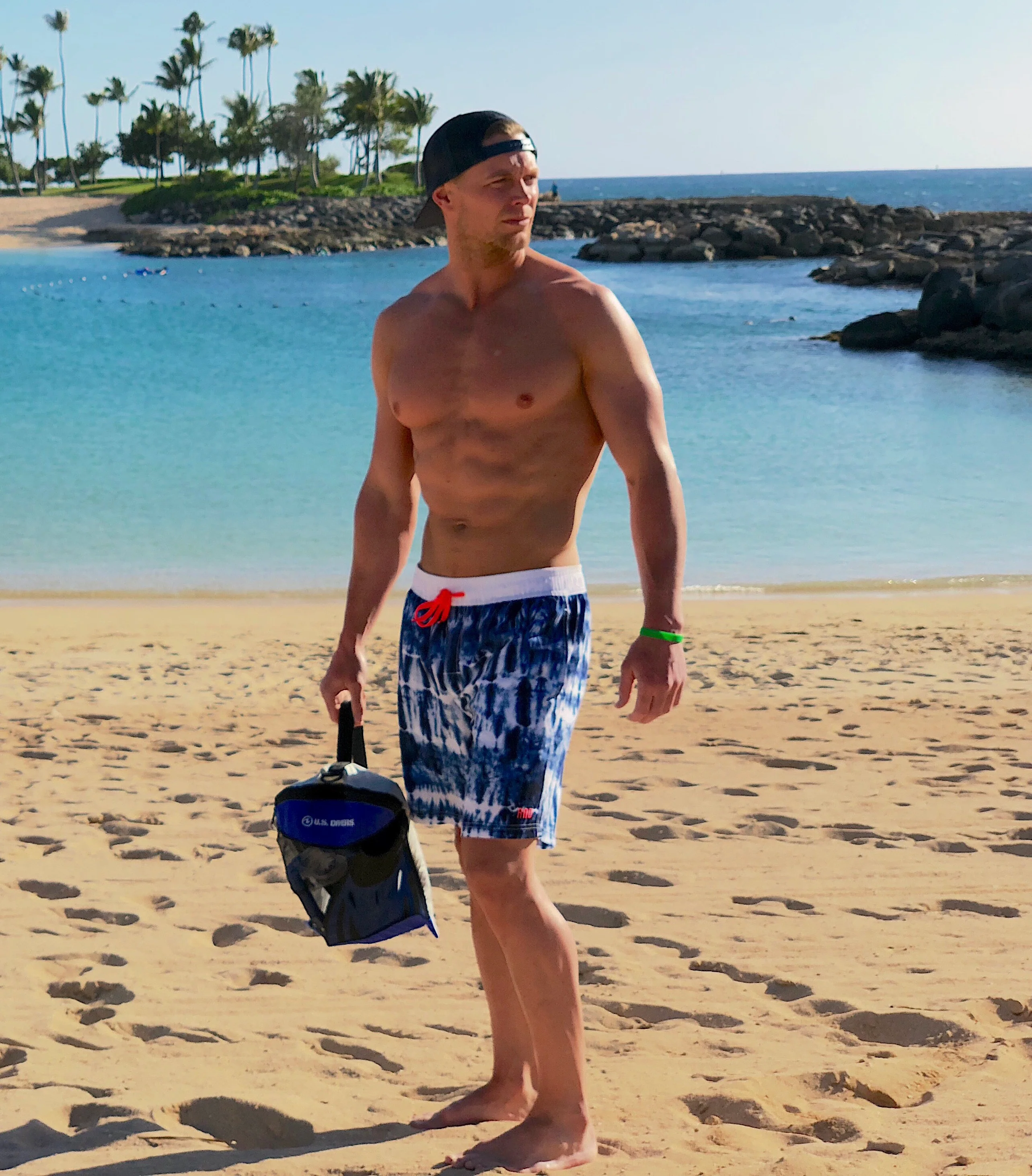 Be as awesome as possible with these men's tie-dye swim trunks.Â