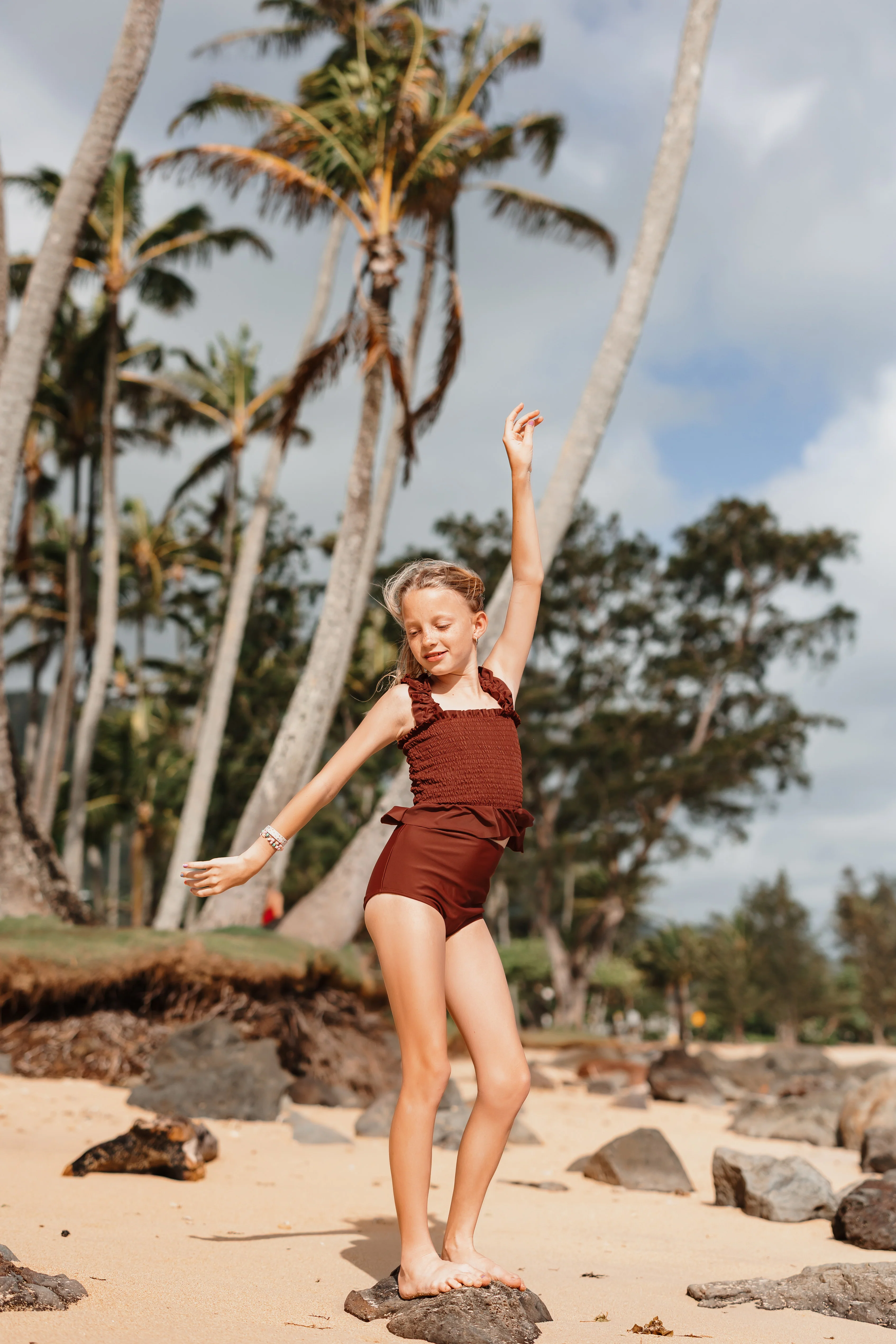 Tween Coco - Brown Smocked Tankini - $56